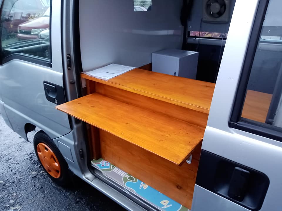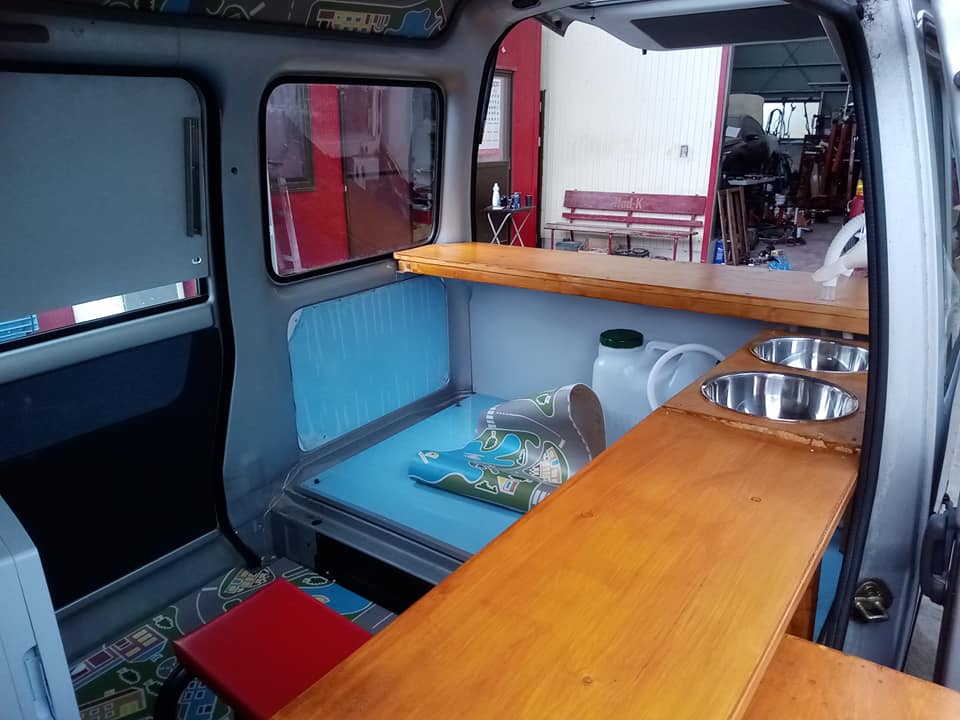 現在お持ちの車輛をベースに移動販売車両の 作製も可能です。 軽トラックの場合は、荷台の作製、内装の仮装、 軽箱ワゴンの場合は、内装の仮装を行います。 販売項目により、内装の仕様は異なりますので、 お問い合わせください。 シンク等の作製価格は下記ボタンをクリック!!! |